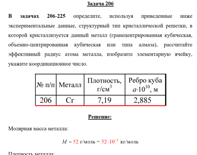 Для студентов по предмету ХимияЗадача 206 - определите, используя приведенные ниже экспериментальные данные, структурный тип кристаллической решетки, в которой кристаллизуется данныЗадача 206 - определите, используя приведенные ниже экспериментальные данные, структурный тип кристаллической решетки, в которой кристаллизуется данны