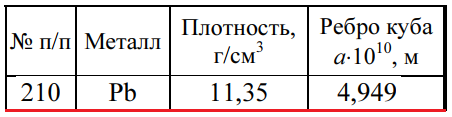 Задача 210 - определите, используя приведенные ниже экспериментальные данные, структурный тип кристаллической решетки, в которой кристаллизуется данный металл (гранецентрированная кубическая, объемно-центрированная кубическая или типа алмаза), рассчи