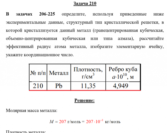 Для студентов по предмету ХимияЗадача 210 - определите, используя приведенные ниже экспериментальные данные, структурный тип кристаллической решетки, в которой кристаллизуется данныЗадача 210 - определите, используя приведенные ниже экспериментальные данные, структурный тип кристаллической решетки, в которой кристаллизуется данны