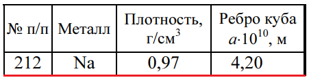 Задача 212 - определите, используя приведенные ниже экспериментальные данные, структурный тип кристаллической решетки, в которой кристаллизуется данный металл (гранецентрированная кубическая, объемно-центрированная кубическая или типа алмаза), рассчи