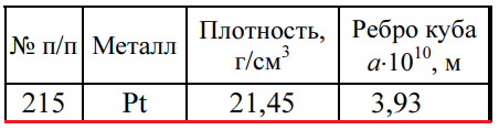Задача 215 - определите, используя приведенные ниже экспериментальные данные, структурный тип кристаллической решетки, в которой кристаллизуется данный металл (гранецентрированная кубическая, объемно-центрированная кубическая или типа алмаза), рассчи