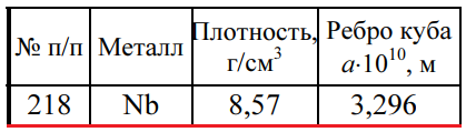 Задача 218 - определите, используя приведенные ниже экспериментальные данные, структурный тип кристаллической решетки, в которой кристаллизуется данный металл (гранецентрированная кубическая, объемно-центрированная кубическая или типа алмаза), рассчи