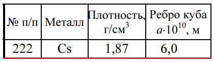 Задача 222 - определите, используя приведенные ниже экспериментальные данные, структурный тип кристаллической решетки, в которой кристаллизуется данный металл (гранецентрированная кубическая, объемно-центрированная кубическая или типа алмаза), рассчи