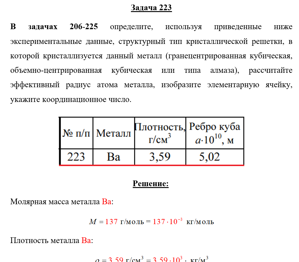 Для студентов по предмету ХимияЗадача 223 - определите, используя приведенные ниже экспериментальные данные, структурный тип кристаллической решетки, в которой кристаллизуется данныЗадача 223 - определите, используя приведенные ниже экспериментальные данные, структурный тип кристаллической решетки, в которой кристаллизуется данны