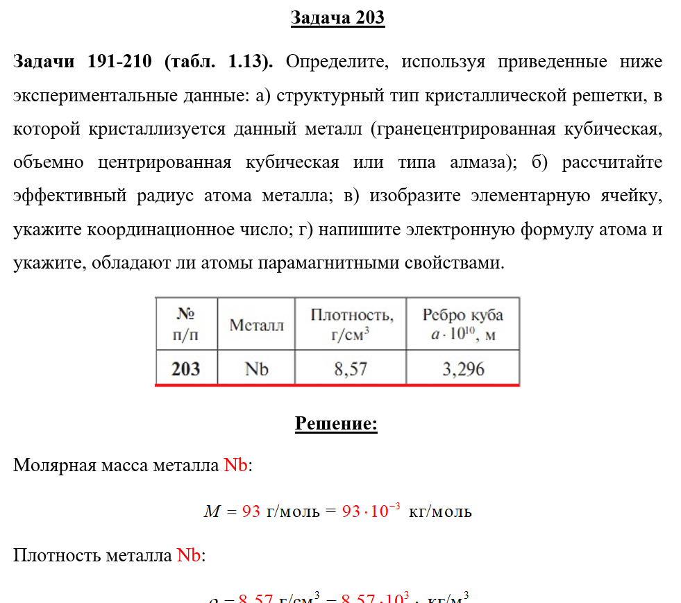 Для студентов по предмету ХимияЗадача 203 - Определите, используя приведенные ниже экспериментальные данные: а) структурный тип кристаллической решетки, в которой кристаллизуется даЗадача 203 - Определите, используя приведенные ниже экспериментальные данные: а) структурный тип кристаллической решетки, в которой кристаллизуется да