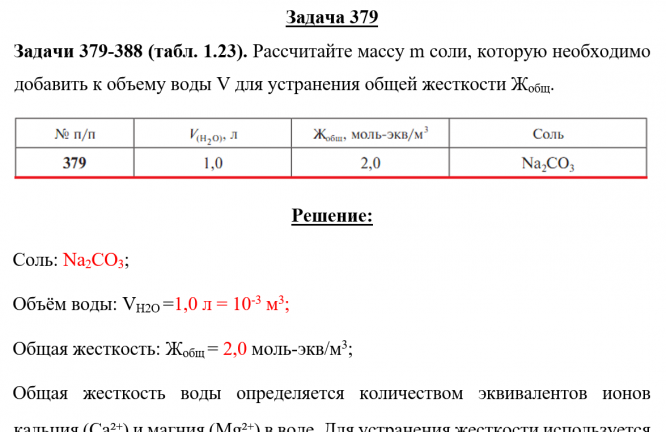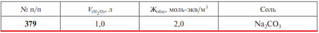 Задача 379: Задача 379 - Рассчитайте массу m соли, которую необходимо добавить к объему воды V для устранения общей жесткости Жобщ.