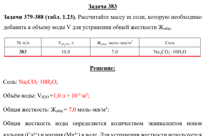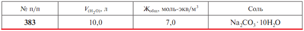 Задача 383: Задача 383 - Рассчитайте массу m соли, которую необходимо добавить к объему воды V для устранения общей жесткости Жобщ.