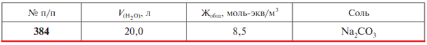 Задача 384: Задача 384 - Рассчитайте массу m соли, которую необходимо добавить к объему воды V для устранения общей жесткости Жобщ.