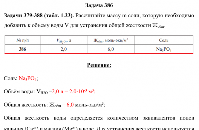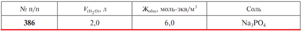 Задача 386: Задача 386 - Рассчитайте массу m соли, которую необходимо добавить к объему воды V для устранения общей жесткости Жобщ.