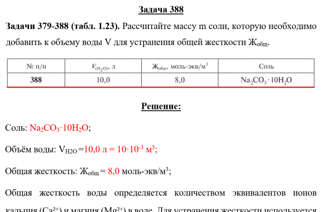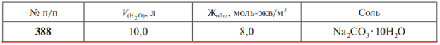 Задача 388: Задача 388 - Рассчитайте массу m соли, которую необходимо добавить к объему воды V для устранения общей жесткости Жобщ.