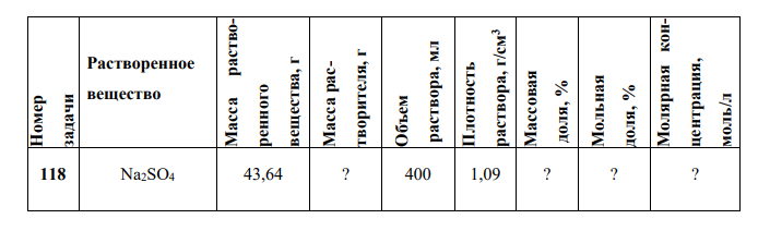Произведите необходимые вычисления и найдите недостающие величины, обозначенные знаком «?» в строке табл. 6, соответствующей номеру Вашей задачи (все растворы — водные).