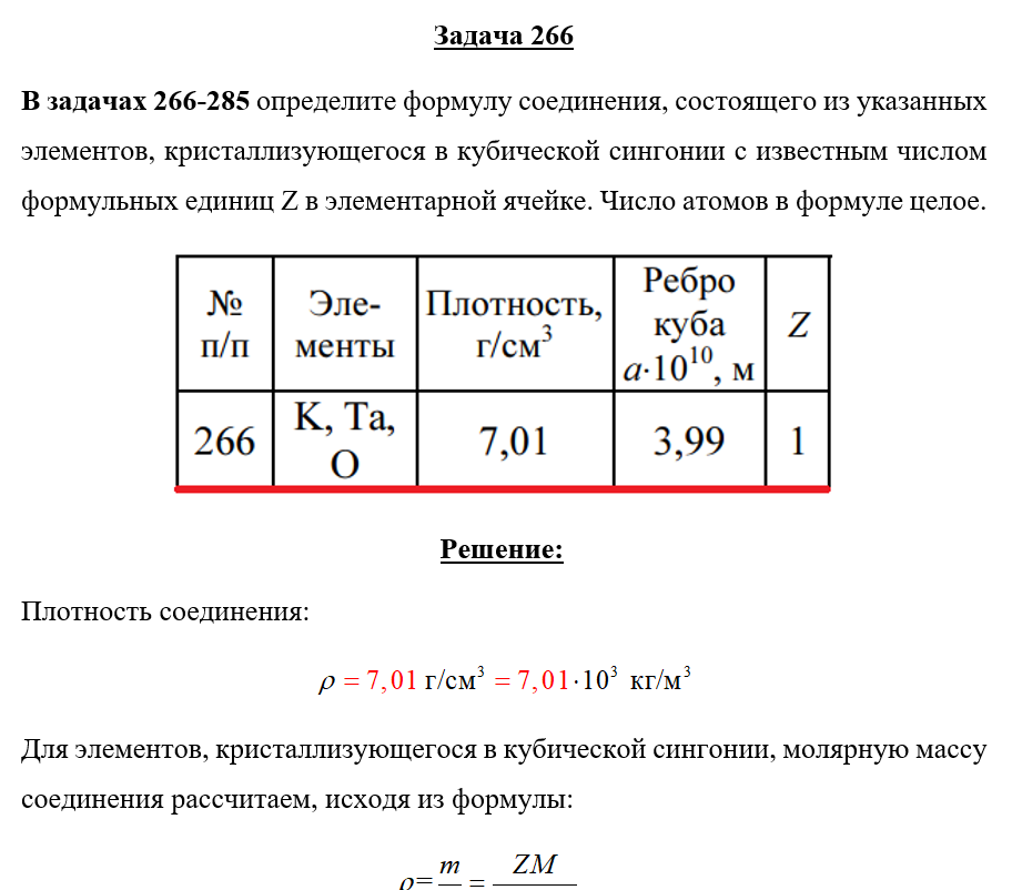 Для студентов по предмету ХимияЗадача 266 - определите формулу соединения, состоящего из указанных элементов, кристаллизующегося в кубической сингонии с известным числом формульных Задача 266 - определите формулу соединения, состоящего из указанных элементов, кристаллизующегося в кубической сингонии с известным числом формульных