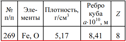 Задача 269 - определите формулу соединения, состоящего из указанных элементов, кристаллизующегося в кубической сингонии с известным числом формульных единиц Z в элементарной ячейке. Число атомов в формуле целое.