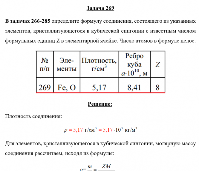 Для студентов по предмету ХимияЗадача 269 - определите формулу соединения, состоящего из указанных элементов, кристаллизующегося в кубической сингонии с известным числом формульных Задача 269 - определите формулу соединения, состоящего из указанных элементов, кристаллизующегося в кубической сингонии с известным числом формульных