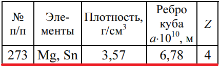 Задача 273 - определите формулу соединения, состоящего из указанных элементов, кристаллизующегося в кубической сингонии с известным числом формульных единиц Z в элементарной ячейке. Число атомов в формуле целое.