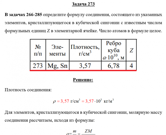 Для студентов по предмету ХимияЗадача 273 - определите формулу соединения, состоящего из указанных элементов, кристаллизующегося в кубической сингонии с известным числом формульных Задача 273 - определите формулу соединения, состоящего из указанных элементов, кристаллизующегося в кубической сингонии с известным числом формульных
