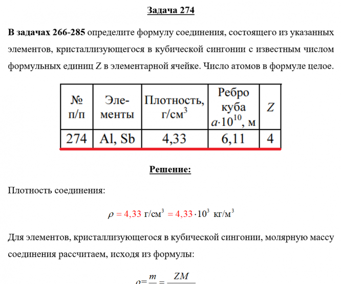 Для студентов по предмету ХимияЗадача 274 - определите формулу соединения, состоящего из указанных элементов, кристаллизующегося в кубической сингонии с известным числом формульных Задача 274 - определите формулу соединения, состоящего из указанных элементов, кристаллизующегося в кубической сингонии с известным числом формульных