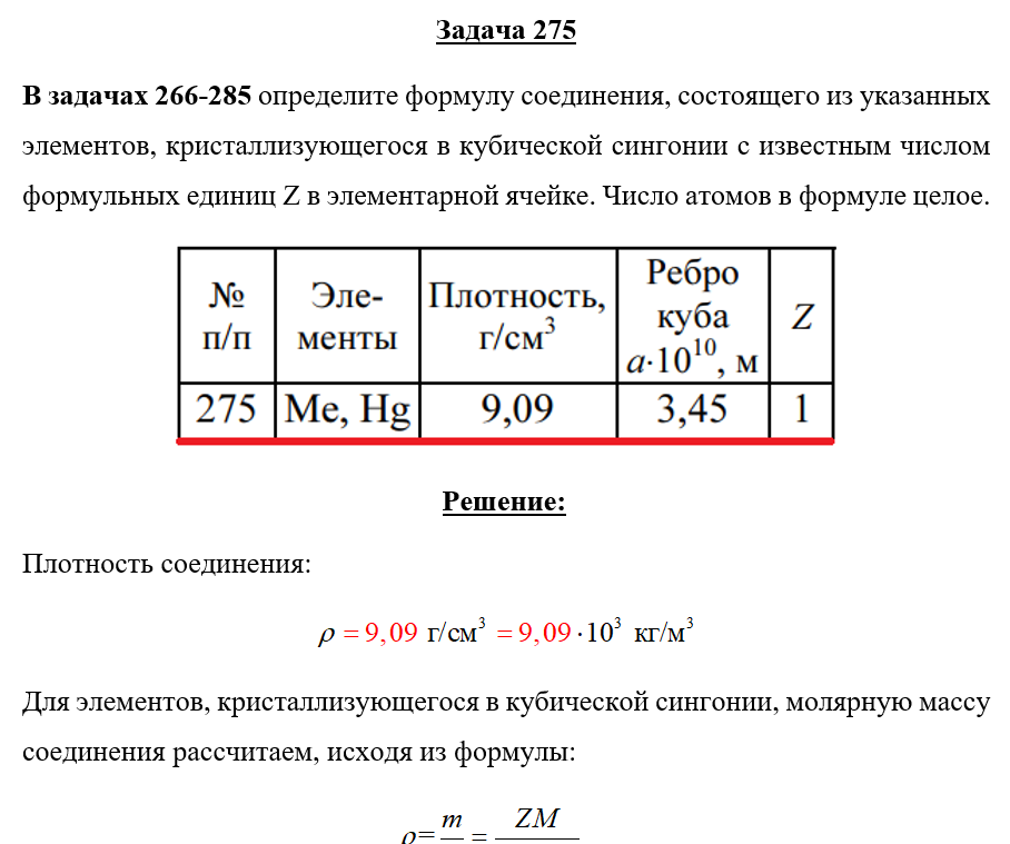 Для студентов по предмету ХимияЗадача 275 - определите формулу соединения, состоящего из указанных элементов, кристаллизующегося в кубической сингонии с известным числом формульных Задача 275 - определите формулу соединения, состоящего из указанных элементов, кристаллизующегося в кубической сингонии с известным числом формульных