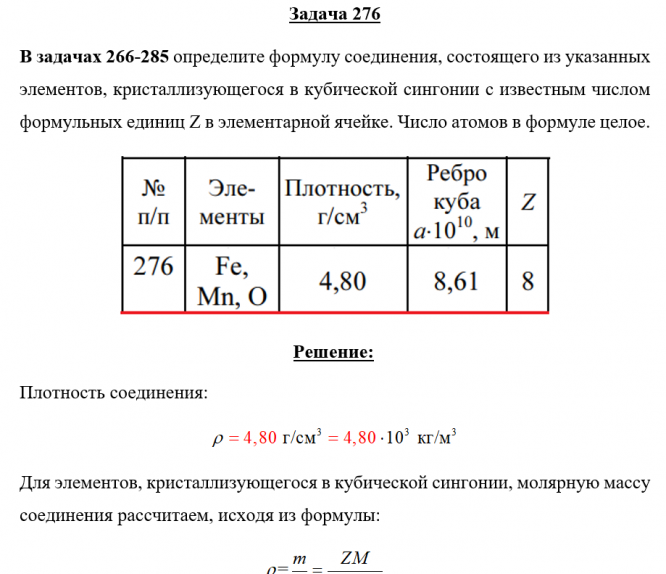 Для студентов по предмету ХимияЗадача 276 - определите формулу соединения, состоящего из указанных элементов, кристаллизующегося в кубической сингонии с известным числом формульных Задача 276 - определите формулу соединения, состоящего из указанных элементов, кристаллизующегося в кубической сингонии с известным числом формульных