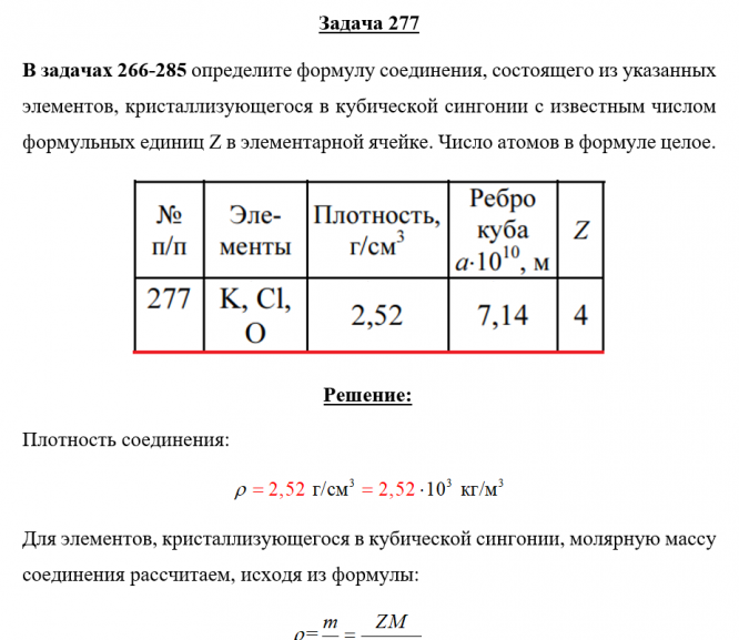 Для студентов по предмету ХимияЗадача 277 - определите формулу соединения, состоящего из указанных элементов, кристаллизующегося в кубической сингонии с известным числом формульных Задача 277 - определите формулу соединения, состоящего из указанных элементов, кристаллизующегося в кубической сингонии с известным числом формульных
