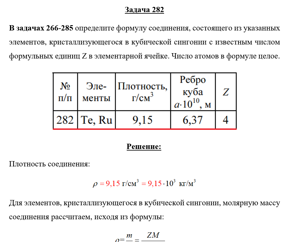 Для студентов по предмету ХимияЗадача 282 - определите формулу соединения, состоящего из указанных элементов, кристаллизующегося в кубической сингонии с известным числом формульных Задача 282 - определите формулу соединения, состоящего из указанных элементов, кристаллизующегося в кубической сингонии с известным числом формульных