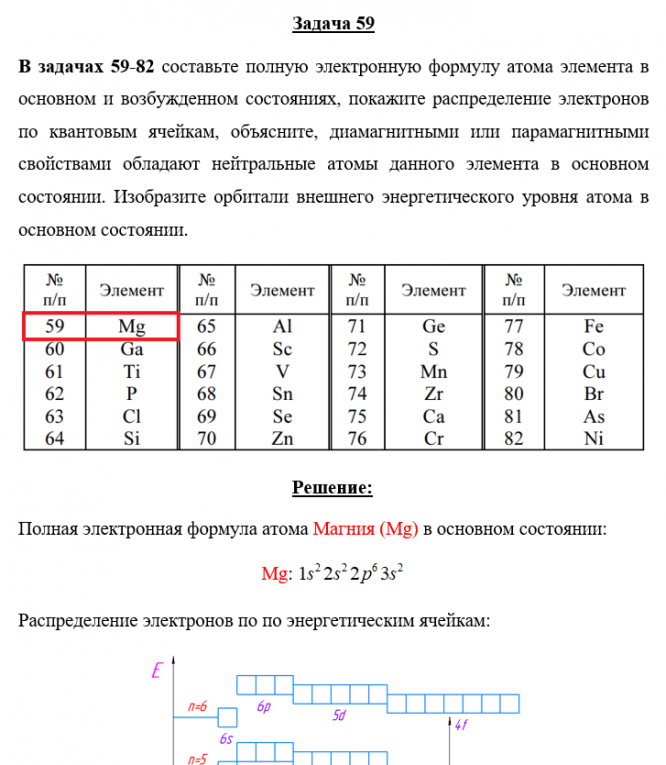Задача 59 - составьте полную электронную формулу атома элемента в основном и возбужденном состояниях, покажите распределение электронов по квантовым ячейкам, объясните, диамагнитными или парамагнитными свойствами обладают нейтральные атомы данного эл