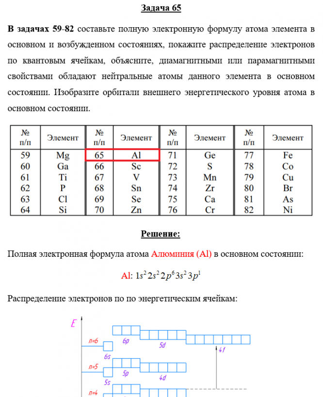 Задача 65 - составьте полную электронную формулу атома элемента в основном и возбужденном состояниях, покажите распределение электронов по квантовым ячейкам, объясните, диамагнитными или парамагнитными свойствами обладают нейтральные атомы данного эл