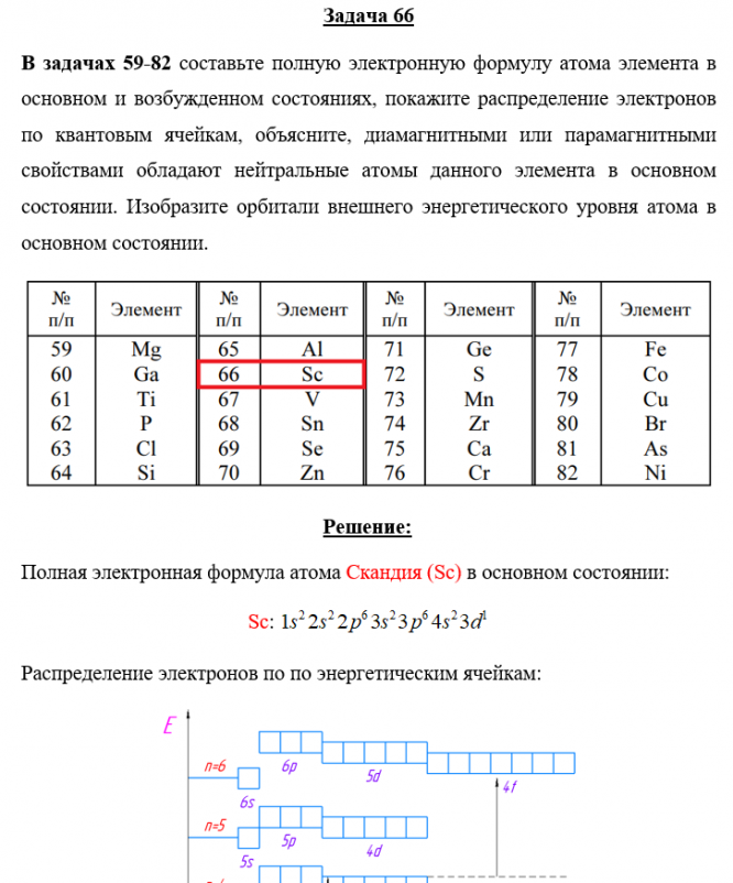 Задача 66 - составьте полную электронную формулу атома элемента в основном и возбужденном состояниях, покажите распределение электронов по квантовым ячейкам, объясните, диамагнитными или парамагнитными свойствами обладают нейтральные атомы данного эл
