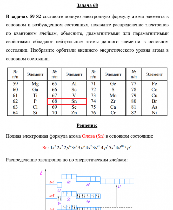 Задача 68 - составьте полную электронную формулу атома элемента в основном и возбужденном состояниях, покажите распределение электронов по квантовым ячейкам, объясните, диамагнитными или парамагнитными свойствами обладают нейтральные атомы данного эл