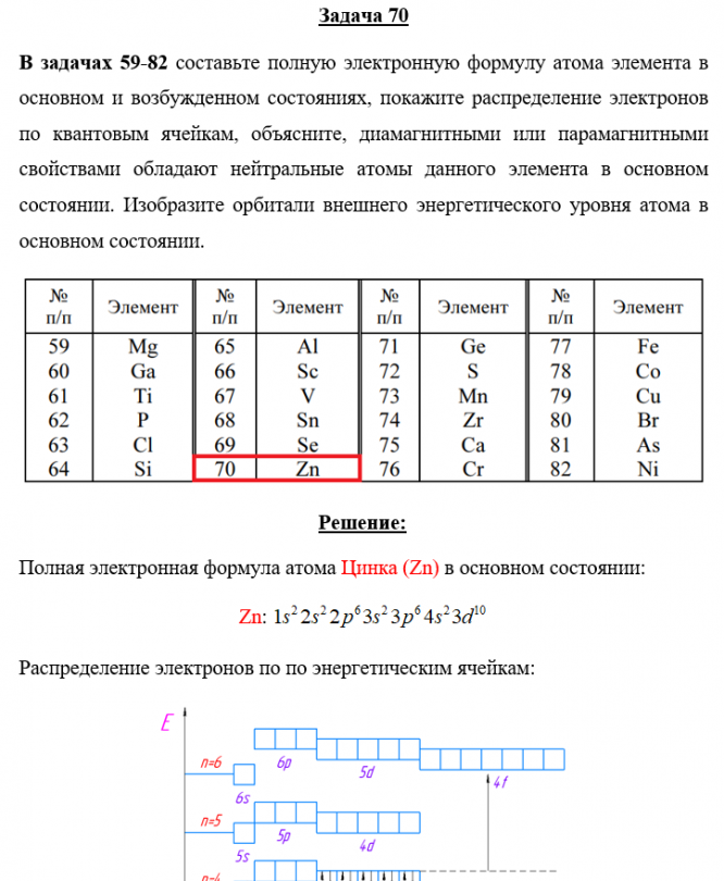 Задача 70 - составьте полную электронную формулу атома элемента в основном и возбужденном состояниях, покажите распределение электронов по квантовым ячейкам, объясните, диамагнитными или парамагнитными свойствами обладают нейтральные атомы данного эл