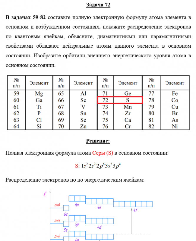 Задача 72 - составьте полную электронную формулу атома элемента в основном и возбужденном состояниях, покажите распределение электронов по квантовым ячейкам, объясните, диамагнитными или парамагнитными свойствами обладают нейтральные атомы данного эл