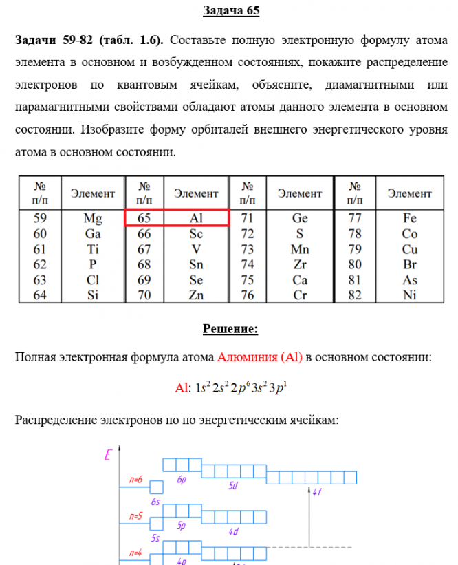 Задача 65 - Составьте полную электронную формулу атома элемента в основном и возбужденном состояниях, покажите распределение электронов по квантовым ячейкам, объясните, диамагнитными или парамагнитными свойствами обладают атомы данного элемента в осн