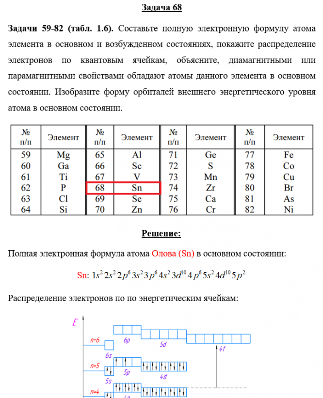 Задача 68 - Составьте полную электронную формулу атома элемента в основном и возбужденном состояниях, покажите распределение электронов по квантовым ячейкам, объясните, диамагнитными или парамагнитными свойствами обладают атомы данного элемента в осн