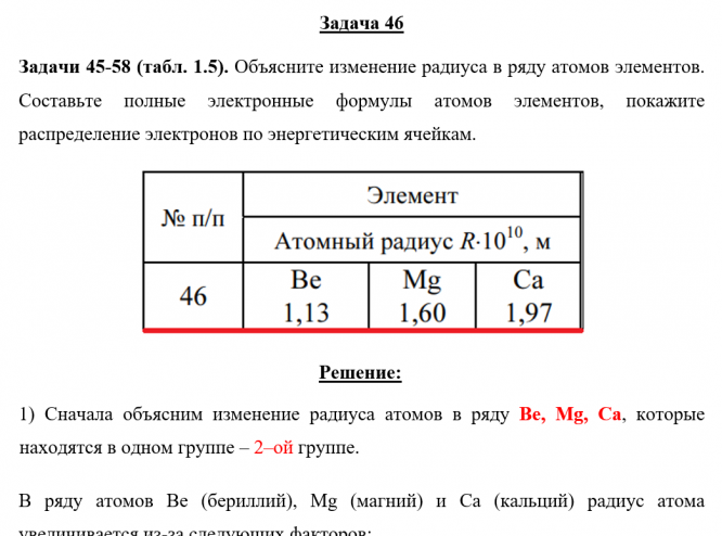 Для студентов по предмету ХимияЗадача 46 - Объясните изменение радиуса в ряду атомов элементов. Составьте полные электронные формулы атомов элементов, покажите распределение электроЗадача 46 - Объясните изменение радиуса в ряду атомов элементов. Составьте полные электронные формулы атомов элементов, покажите распределение электро