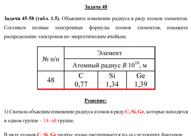 Для студентов по предмету ХимияЗадача 48 - Объясните изменение радиуса в ряду атомов элементов. Составьте полные электронные формулы атомов элементов, покажите распределение электроЗадача 48 - Объясните изменение радиуса в ряду атомов элементов. Составьте полные электронные формулы атомов элементов, покажите распределение электро