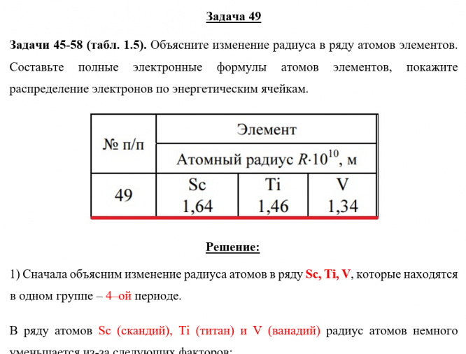 Задача 49 - Объясните изменение радиуса в ряду атомов элементов. Составьте полные электронные формулы атомов элементов, покажите распределение электронов по энергетическим ячейкам