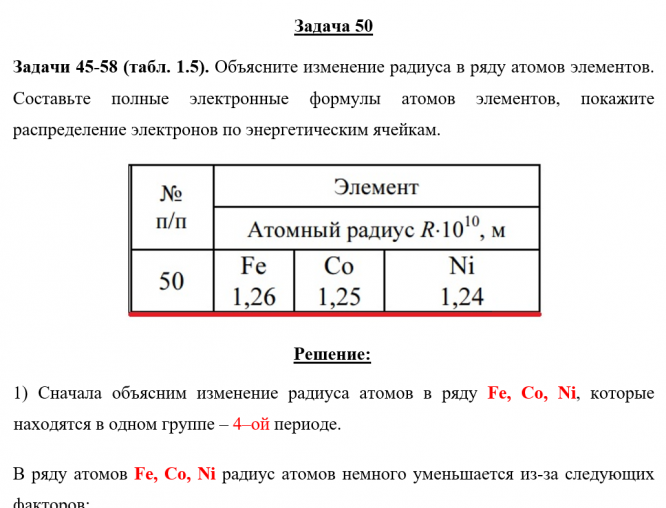 Задача 50 - Объясните изменение радиуса в ряду атомов элементов. Составьте полные электронные формулы атомов элементов, покажите распределение электронов по энергетическим ячейкам