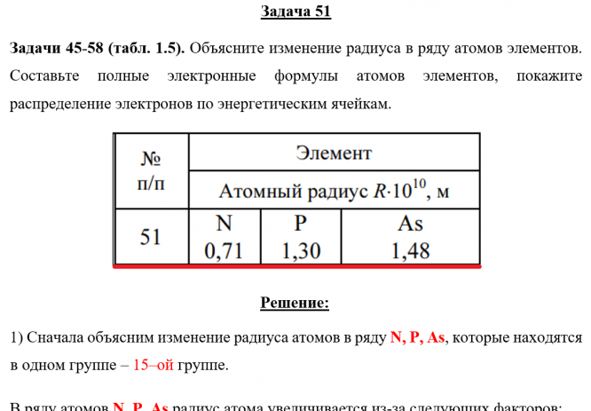 Для студентов по предмету ХимияЗадача 51 - Объясните изменение радиуса в ряду атомов элементов. Составьте полные электронные формулы атомов элементов, покажите распределение электроЗадача 51 - Объясните изменение радиуса в ряду атомов элементов. Составьте полные электронные формулы атомов элементов, покажите распределение электро