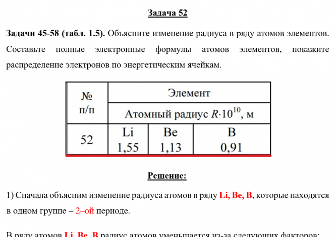 Для студентов по предмету ХимияЗадача 52 - Объясните изменение радиуса в ряду атомов элементов. Составьте полные электронные формулы атомов элементов, покажите распределение электроЗадача 52 - Объясните изменение радиуса в ряду атомов элементов. Составьте полные электронные формулы атомов элементов, покажите распределение электро
