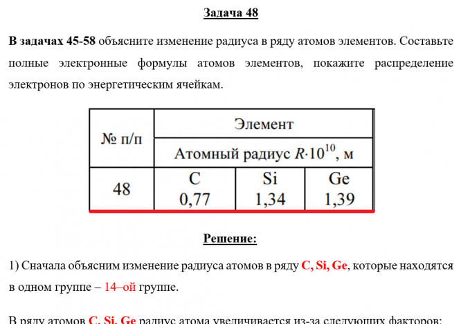 Задача 48 - объясните изменение радиуса в ряду атомов элементов. Составьте полные электронные формулы атомов элементов, покажите распределение электронов по энергетическим ячейкам.