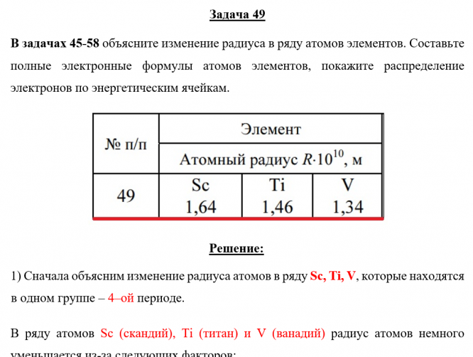 Задача 49 - объясните изменение радиуса в ряду атомов элементов. Составьте полные электронные формулы атомов элементов, покажите распределение электронов по энергетическим ячейкам.