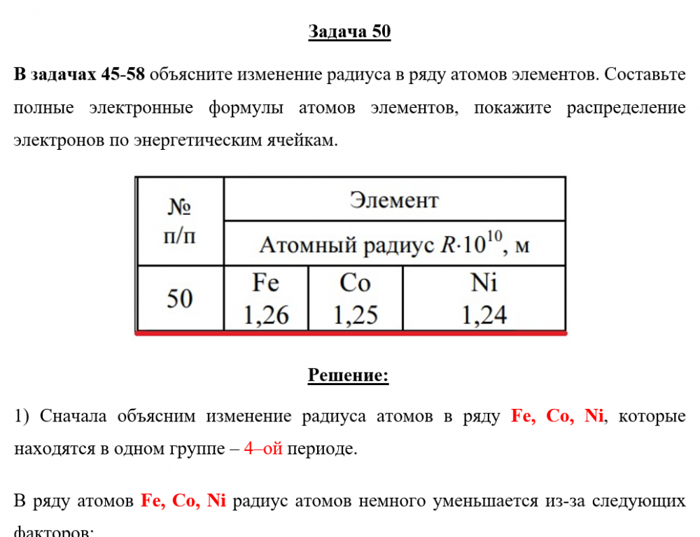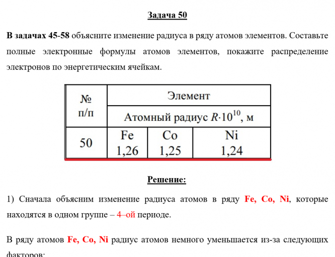 Задача 50 - объясните изменение радиуса в ряду атомов элементов. Составьте полные электронные формулы атомов элементов, покажите распределение электронов по энергетическим ячейкам.