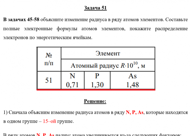 Задача 51 - объясните изменение радиуса в ряду атомов элементов. Составьте полные электронные формулы атомов элементов, покажите распределение электронов по энергетическим ячейкам.