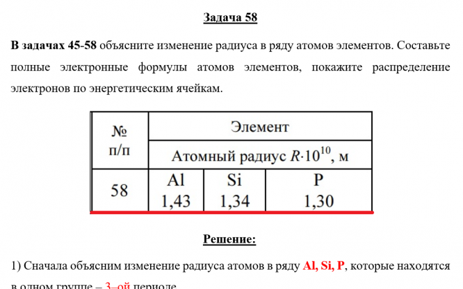 Задача 58 - объясните изменение радиуса в ряду атомов элементов. Составьте полные электронные формулы атомов элементов, покажите распределение электронов по энергетическим ячейкам.