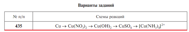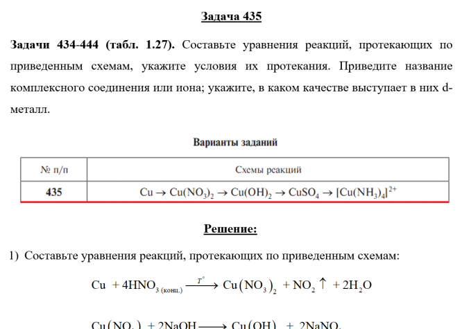 Задачи 434-444 (табл. 1.27). Составьте уравнения реакций, протекающих по приведенным схемам, укажите условия их протекания. Приведите название комплексного соединения или иона; укажите, в каком качестве выступает в них d-металл..