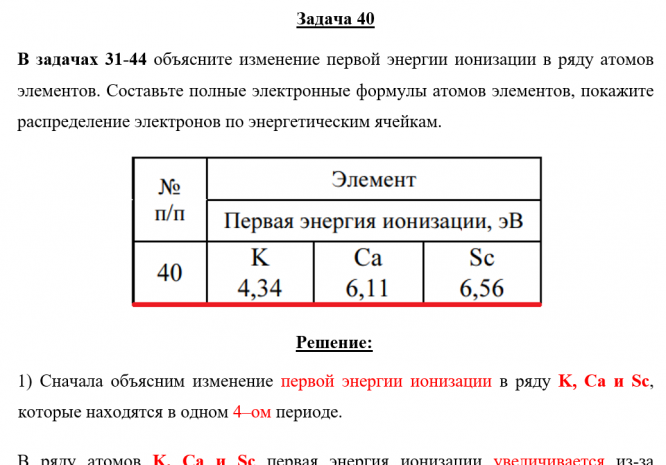 Задача 40 - объясните изменение первой энергии ионизации в ряду атомов элементов. Составьте полные электронные формулы атомов элементов, покажите распределение электронов по энергетическим ячейкам.