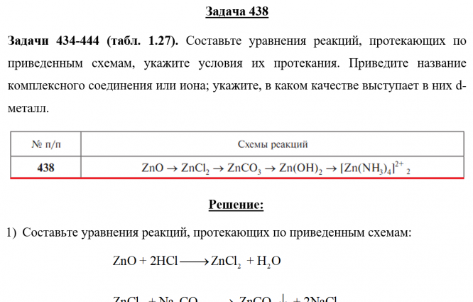 Задачи 434-444 (табл. 1.27). Составьте уравнения реакций, протекающих по приведенным схемам, укажите условия их протекания. Приведите название комплексного соединения или иона; укажите, в каком качестве выступает в них d-металл..