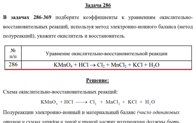Для студентов по предмету ХимияЗадача 286 - подберите коэффициенты к уравнениям окислительно-восстановительных реакций, используя метод электронно-ионного баланса (метод полуреакцийЗадача 286 - подберите коэффициенты к уравнениям окислительно-восстановительных реакций, используя метод электронно-ионного баланса (метод полуреакций
