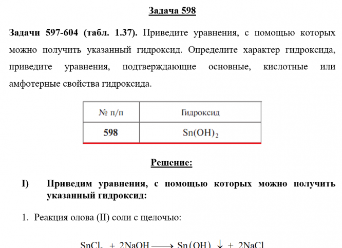 Задачи 597-604 (табл. 1.37). Приведите уравнения, с помощью которых можно получить указанный гидроксид. Определите характер гидроксида, приведите уравнения, подтверждающие основные, кислотные или амфотерные свойства гидроксида. .