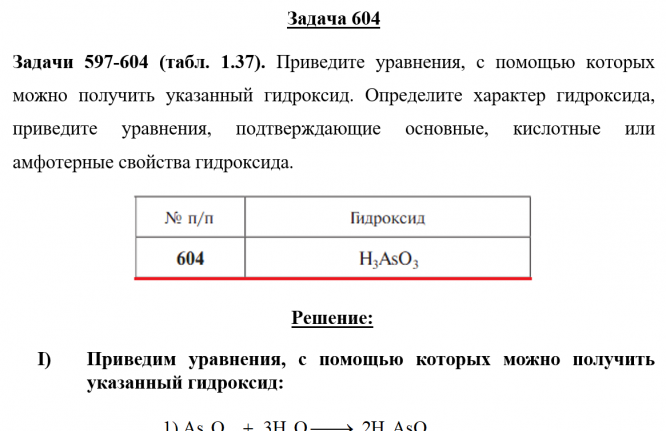 Задачи 597-604 (табл. 1.37). Приведите уравнения, с помощью которых можно получить указанный гидроксид. Определите характер гидроксида, приведите уравнения, подтверждающие основные, кислотные или амфотерные свойства гидроксида. .